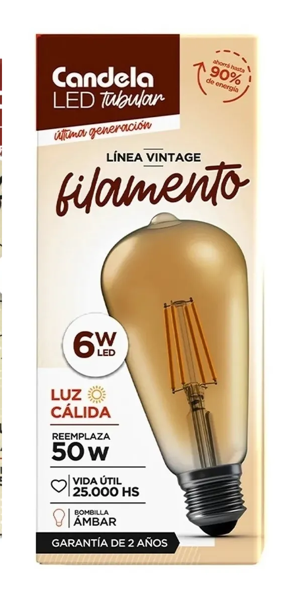 LAMPARA FILAMENTO LED TUBULAR AMBAR 6W – CANDELA