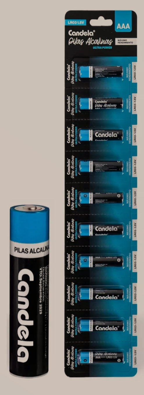 Las pilas alcalinas AAA 1.5V Ultra Power Candela son la solución ideal para mantener tus dispositivos funcionando de manera eficiente. Con un diseño cilíndrico y una composición alcalina, estas pilas ofrecen un rendimiento confiable y duradero, perfectas para una amplia gama de aparatos electrónicos.
